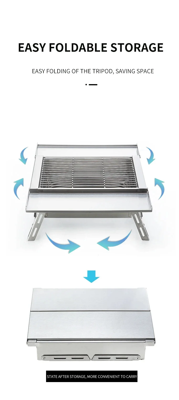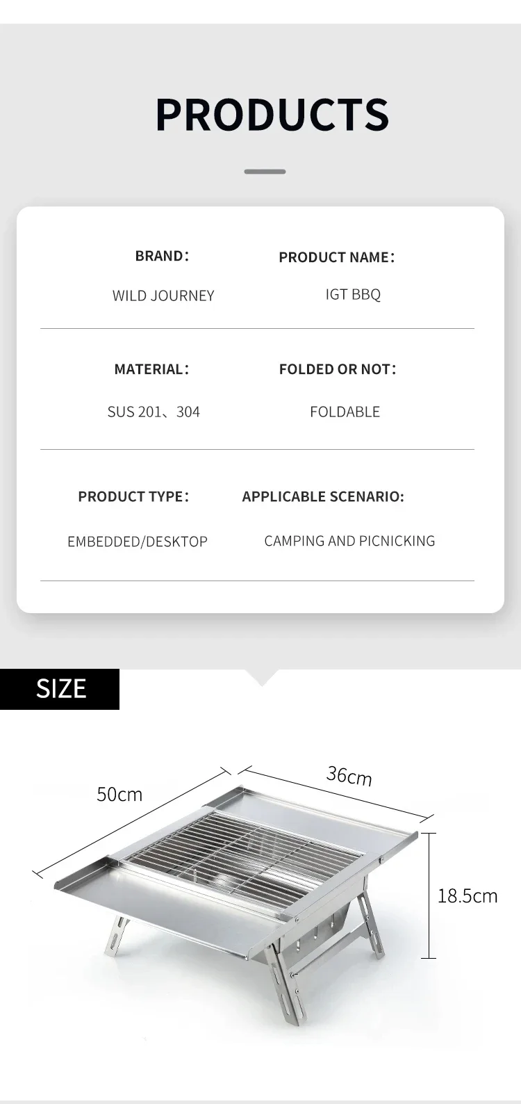 IGT Outdoor Stainless Steel Folding Barbecue Charcoal Grills Portable Camping Small Barbecue Oven Wild Journey