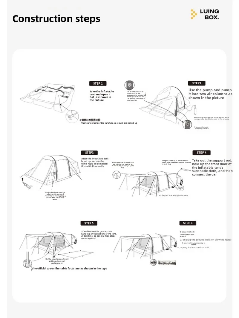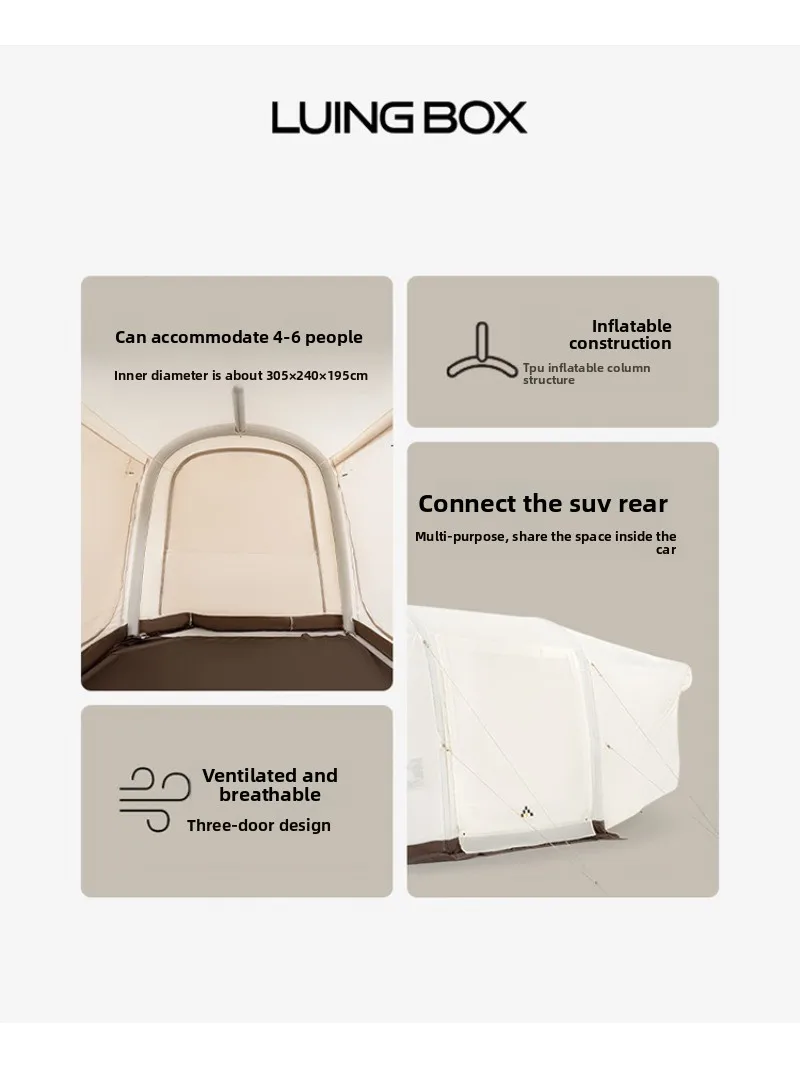 LUINGBOX Tunnel CanopyTent Contains Ground Cloth Camping Tent Inflatable Tent Two Rooms Car Tail Account Outside Lightweight